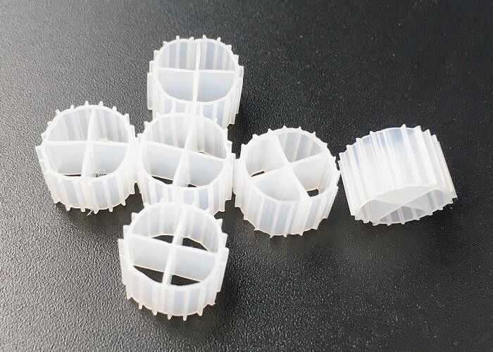 白色 11*7mm 再循環水産システム MBBR 浮遊型キャリア hdpe 安全なラム材料
